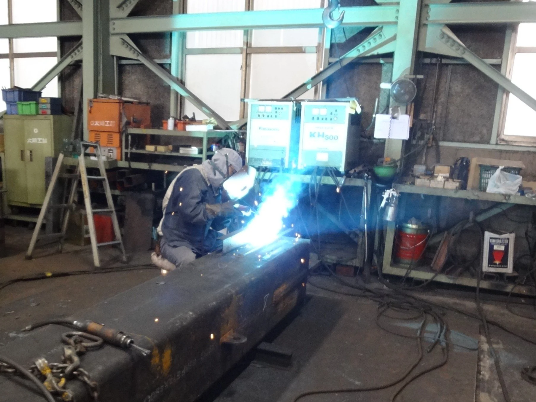 材料入荷後、工場において柱及び梁の組立・溶接をします。